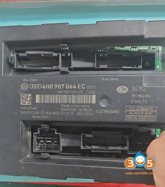 It’s an Audi A7 equipped with an encrypted BCM2 (Body Control Module 2) module, identified by the 4H0 part number prefix. Modules starting with 4H0 are usually encrypted BCM2 modules。 This BCM2 module contains an MCU chip, the D70F3634, which adds an extra layer of security.