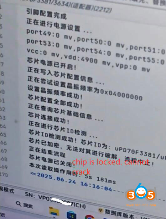 With the first-gen BCM2 adapter, multi prog read the module’s ID. While the adapter successfully detected the module, it returned an error indicating that the chip was encrypted and could not be decrypted. This confirmed that the older adapter lacked the necessary decryption capabilities and could not clone an encrypted BCM2 module.