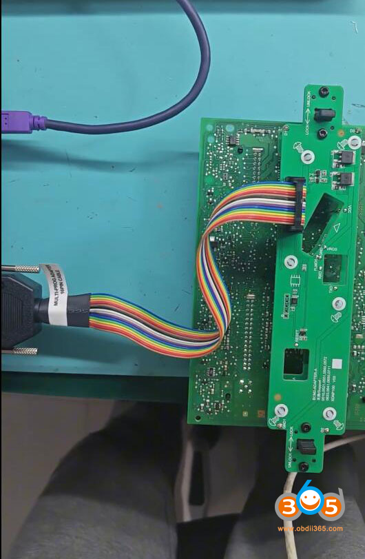 Install the BCM2 solder free adapter, connect the adapter with multi prog. Also need to connect 12V power supply to the BCM2 green connector.