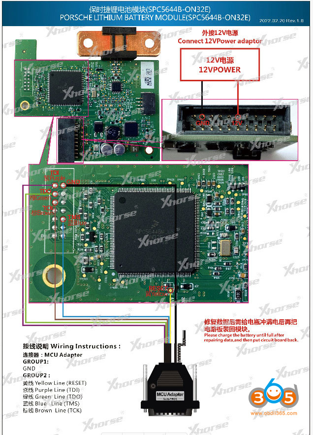 Multi Prog pinout to Porsche 12V battery module SPC5644B-ON32E.
