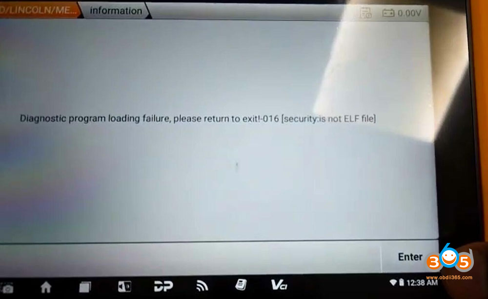 OBDSTAR G3 Diag Program Loading Failure Error 016 Solution