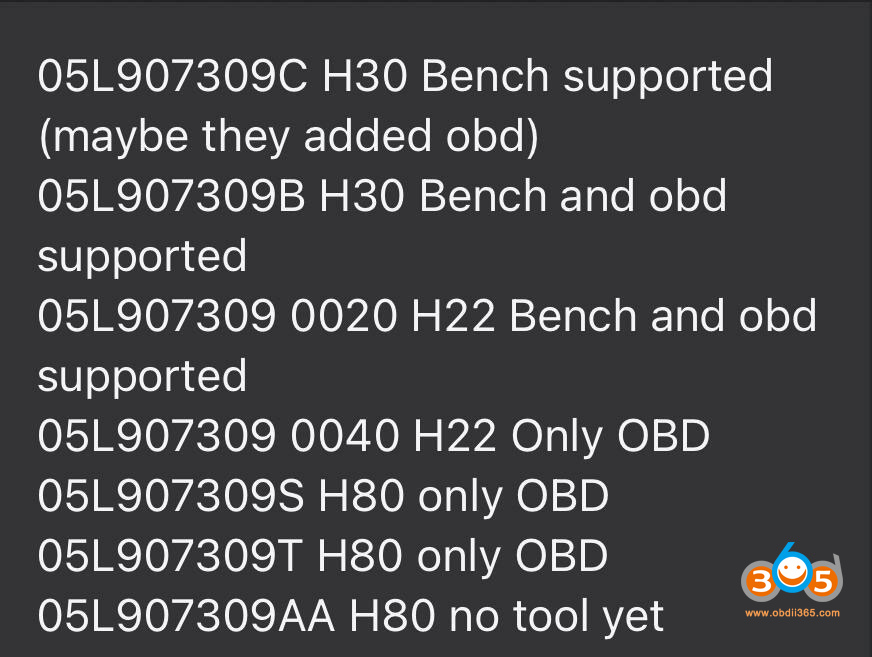 Some versions cannot do on bench mode, i,e H80, H22 only OBD.