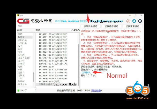 If need to switch to normal mode. Hit “Switch Normal Mode” in CG70 software and disconnect CG70 adapter.