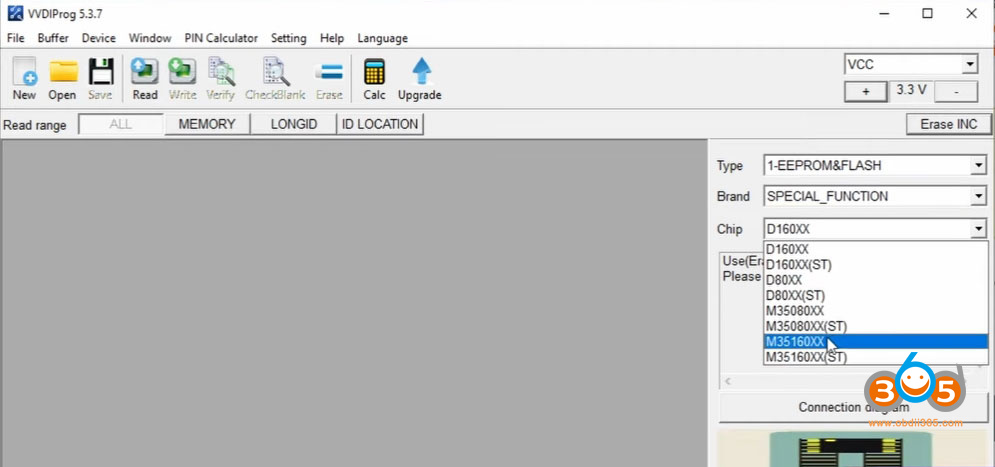 Standard Setup: The VVDI PROG, in its standard configuration, doesn’t require additional boards for basic operations. Using its software, you select the “EEPROM” special function and choose the chip type (e.g., 35080 or 35160). The tool can read the EEPROM content, including the chip’s ID, and transfer this data to a custom VVDI 35160 chip.