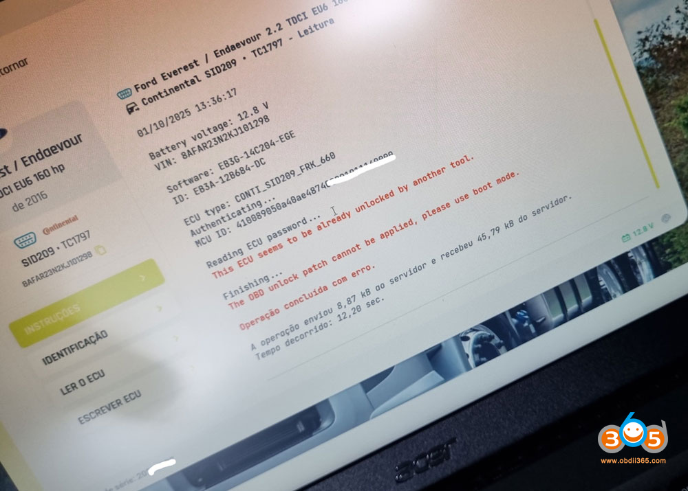 Autotuner is not reading SID209 via OBD. Software says the ECU is already unlocked by another tool. Any solution?