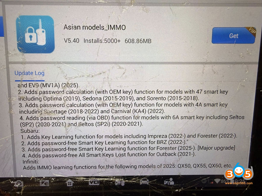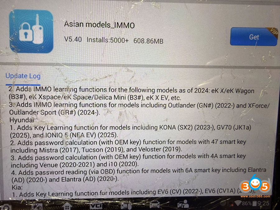 Adds password reading (via OBD) function for models with 6A smart key including Elantra (AD) (2020-) and Elantra (AD) (2020-).