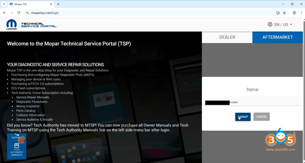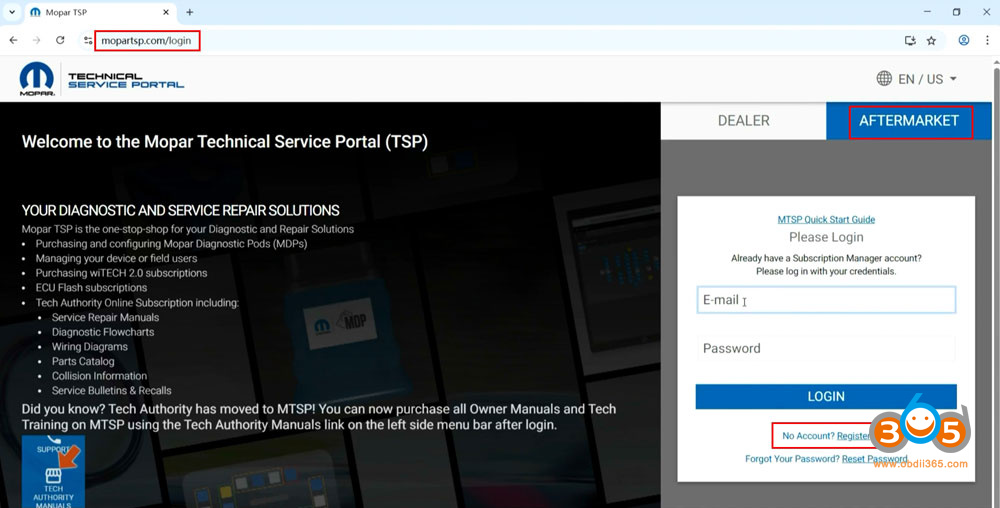 Note: You need to register an account from AFTERMARKET when using a Topdon Rlink or third-party device.
