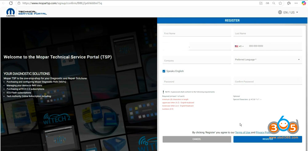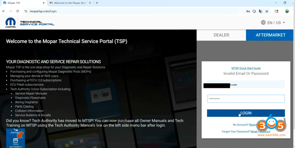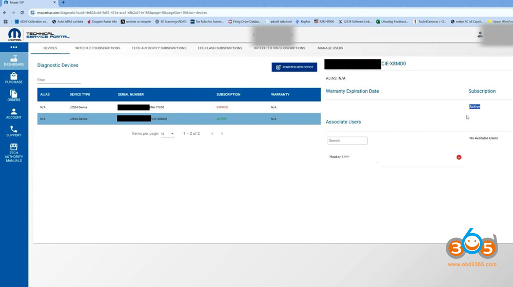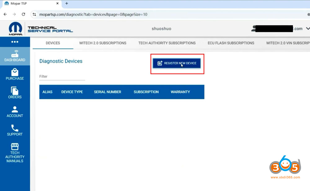 Log in to the wiTech2 account that you registered on the Chrysler official website.