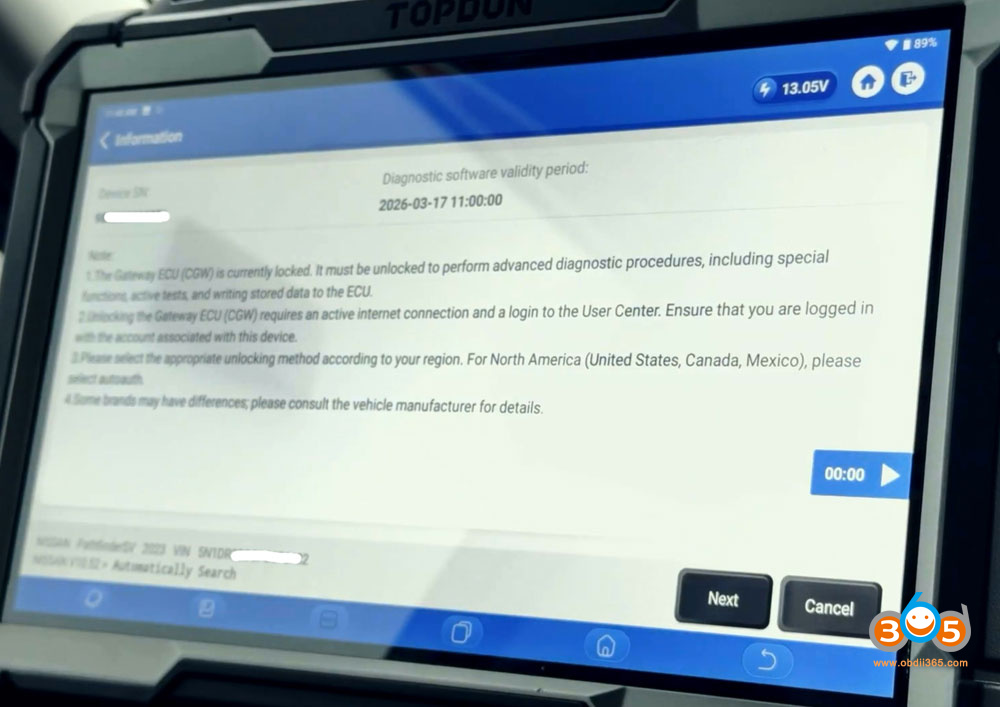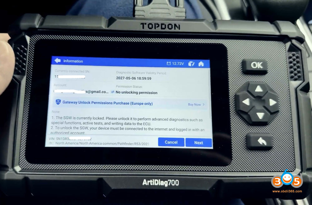 Topdon Artidiag Series Nissan Autoauth Unlock Process