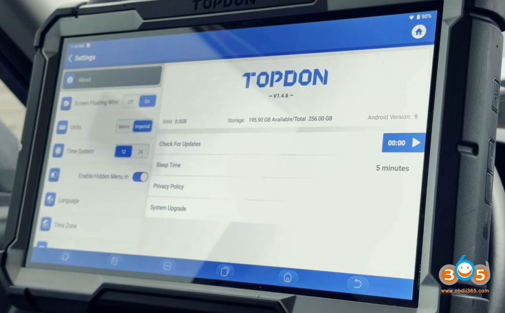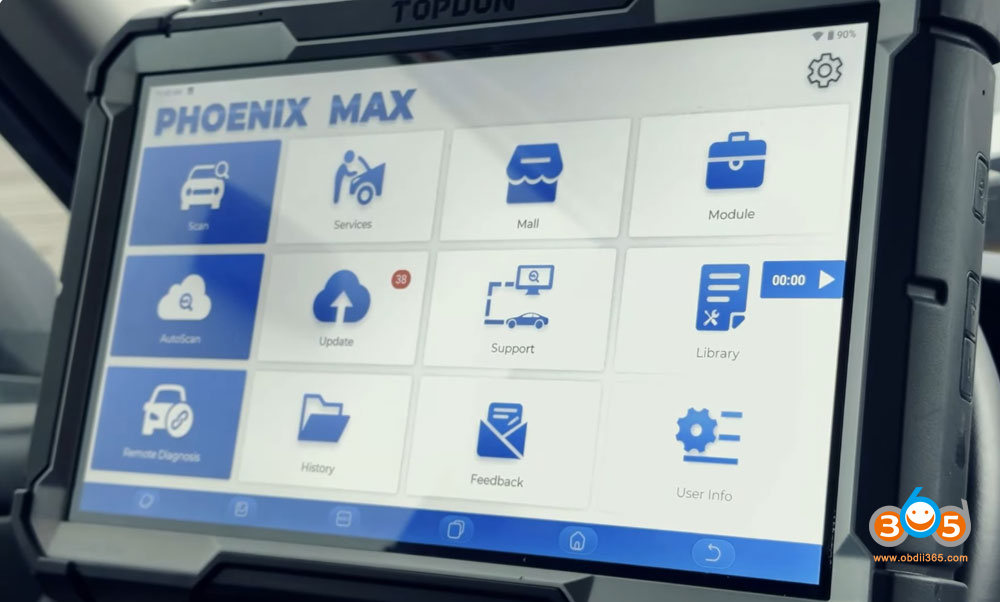 Check for updates in the Settings menu under “About.” Remember, for some models like the Phoenix Max and Phoenix Smart, the dongle (MDCI) must be updated separately from the tablet.
