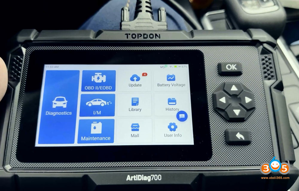 Enter the “Diagnostics” menu and use the “Auto VIN” function to identify the vehicle.