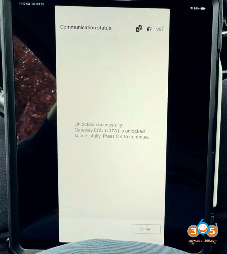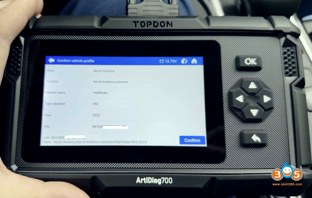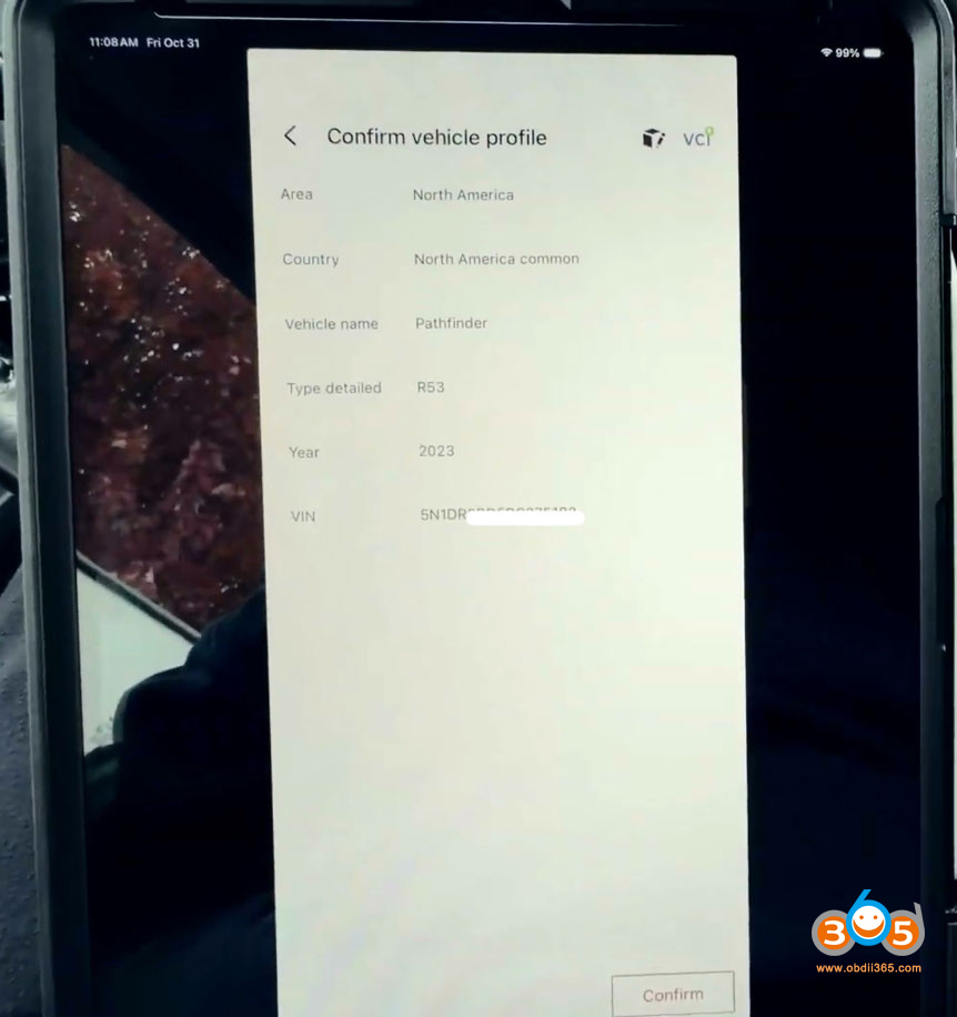 The Phoenix tool will identify the Vehicle Identification Number (VIN). Confirm the details.