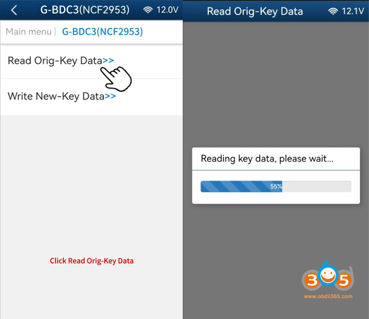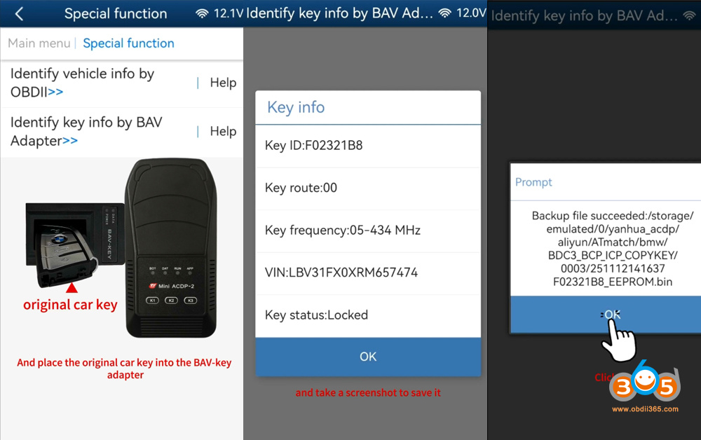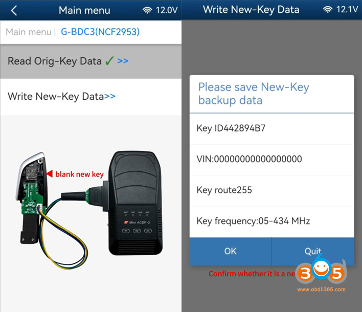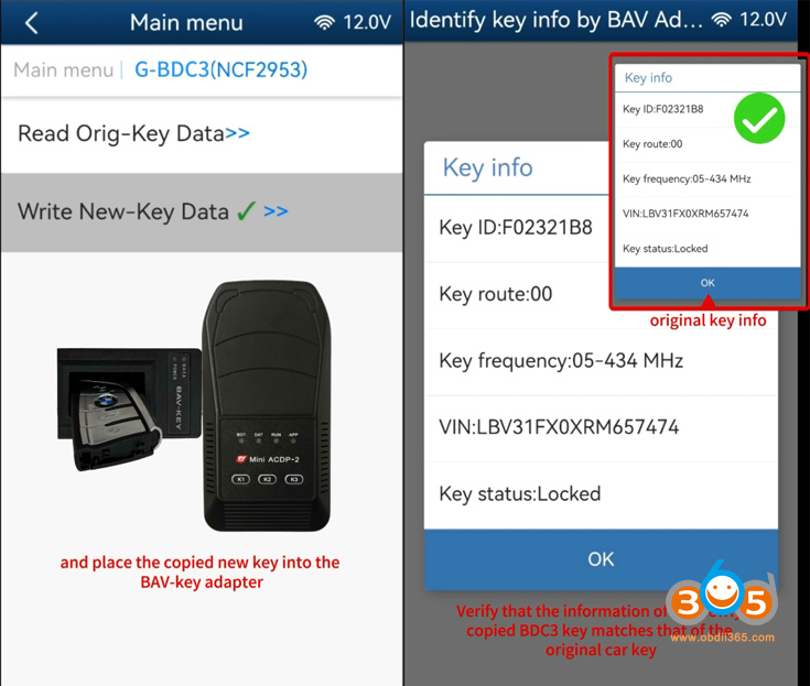 Verify the information of the newly copied BDC3 key matched that of the original car key.