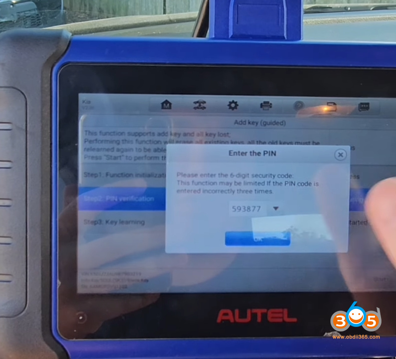 2). Verify pin (enter the pin code from dealer/3rd party)