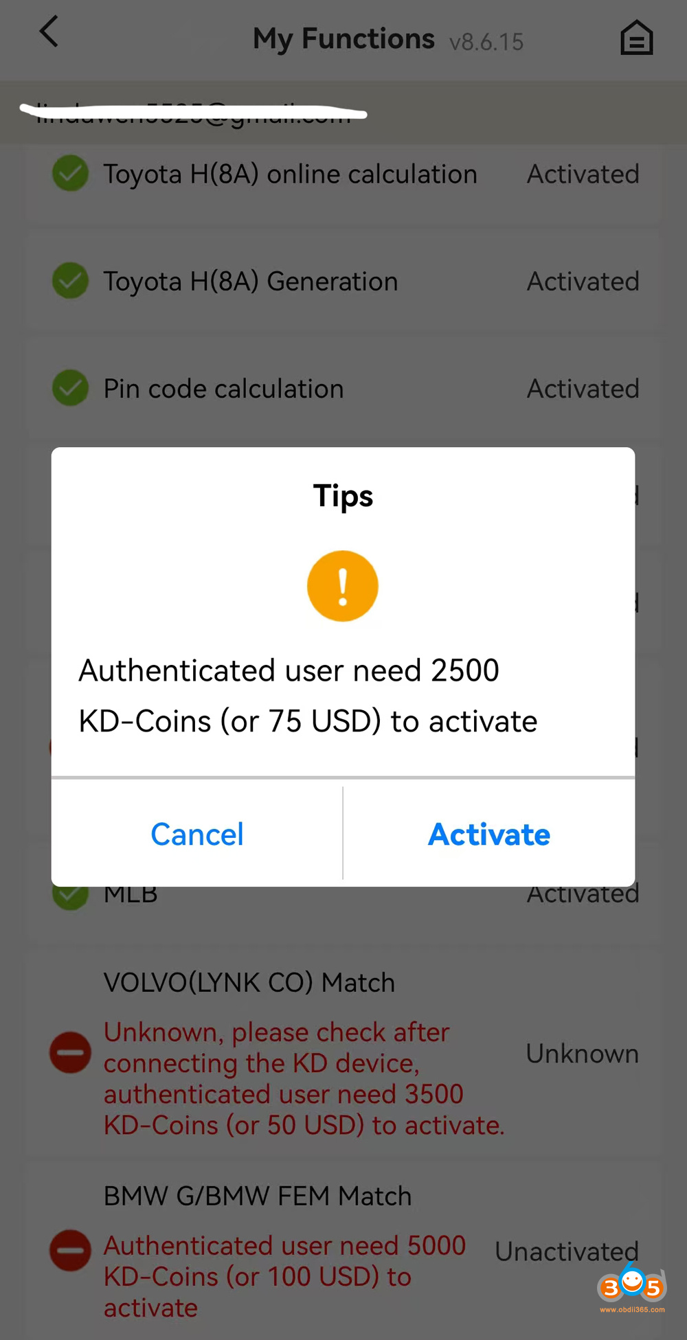 Keydiy will show how many KD-coins or USD to activate the corresponding license. Hit Activate.