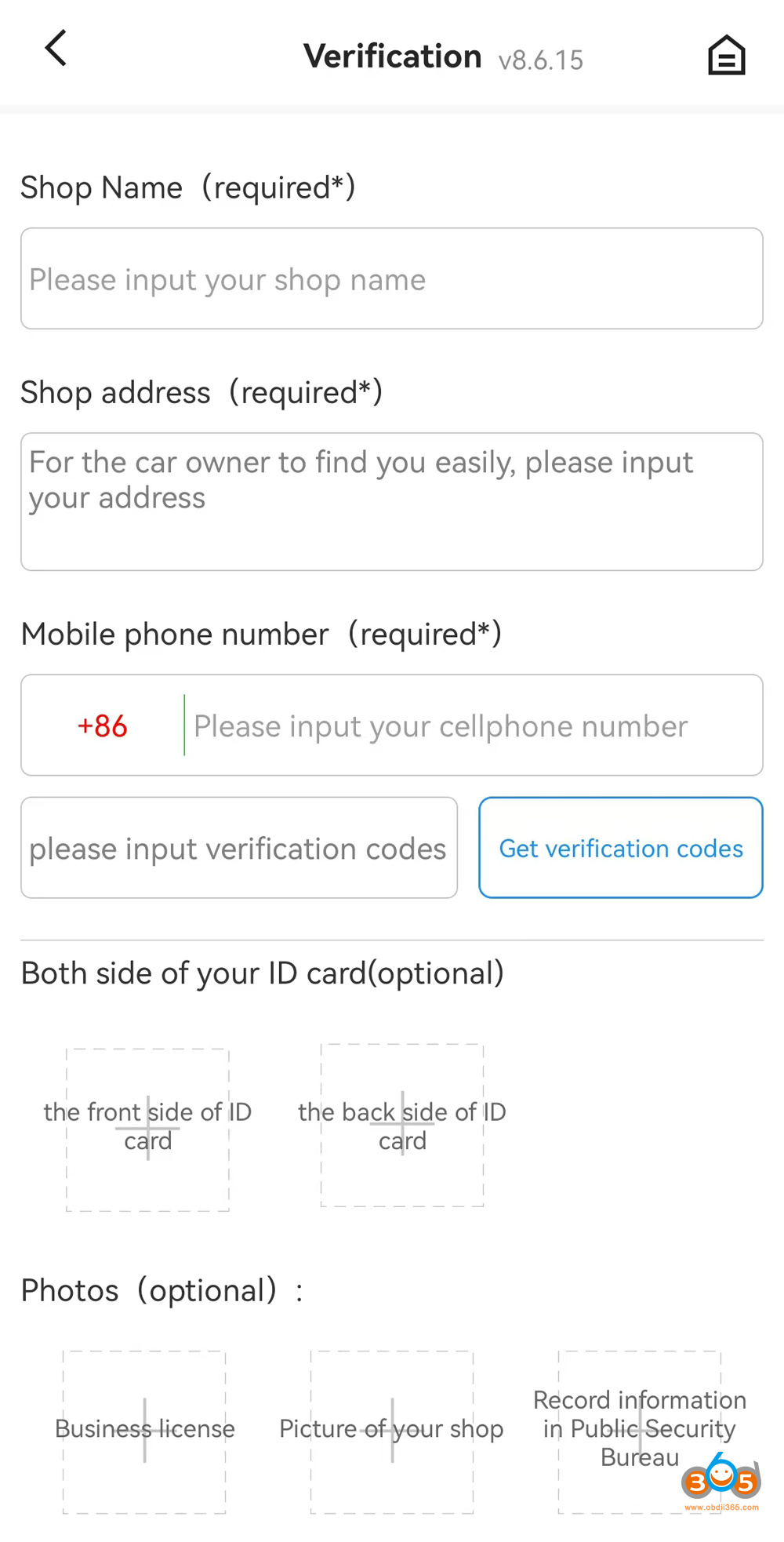 Complete user information shop name, address, phone number, ID card, business license etc and sumbit.