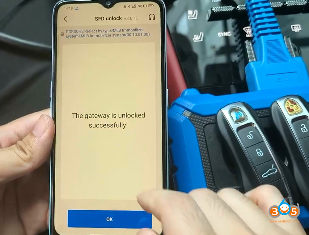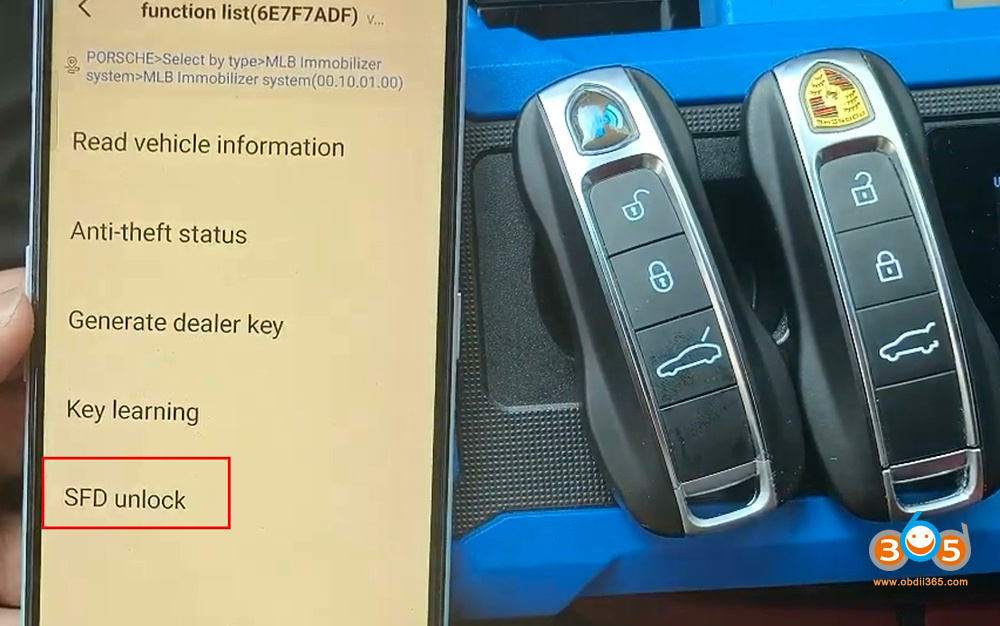 Select IMMO Programming- Porsche/VAG- MLB Immobilizer System-Start execution- SFD Unlock.