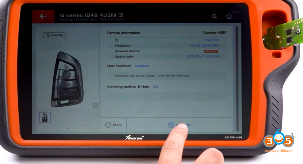 Place the generated VVDI BMW XM38 G key into the device coil.