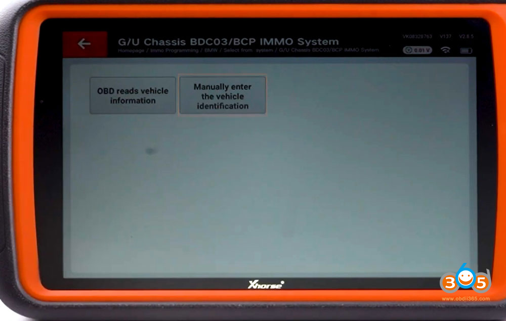 Go to IMMO Programming- BMW- G/U Chassis BDC03/BCP IMMO System- Read vehicle information.