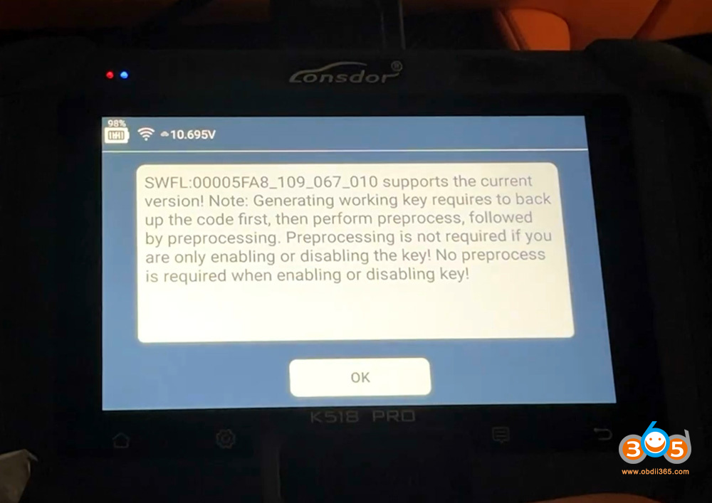 NOTE: Preprocessing is not required if you only enable ot disable key.
