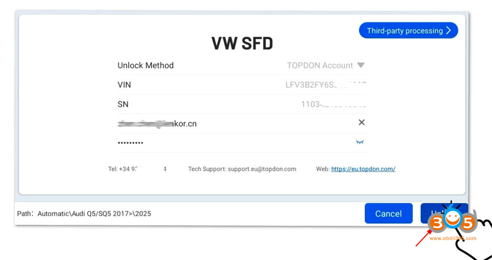How to Unlock VAG SFD Gateway by Topdon within Device?
