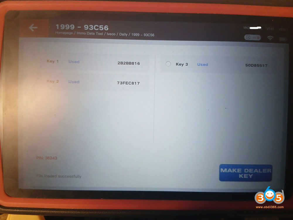 6. Load the read eeprom in to your key tool plus and open the file with Immo Data tool.
