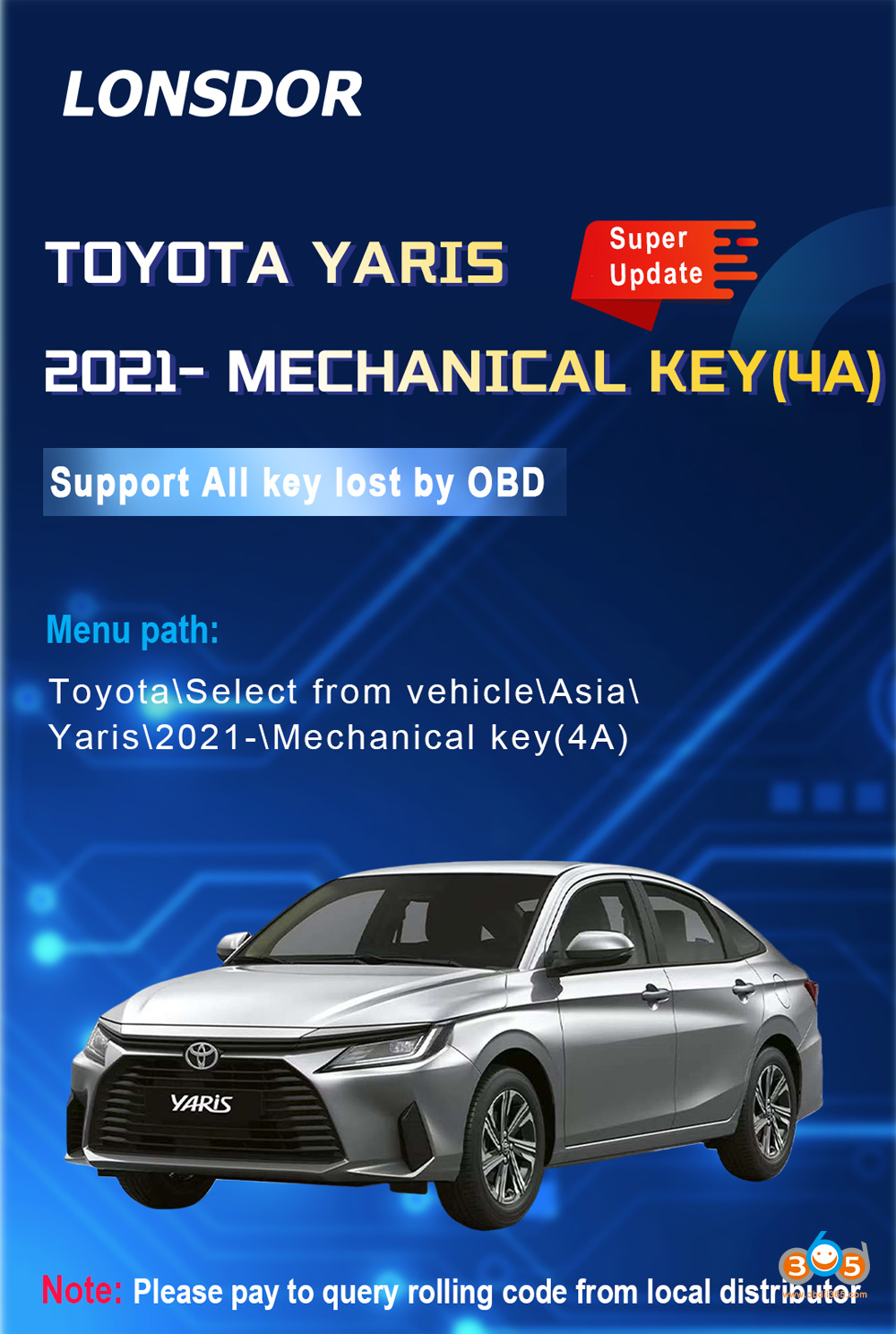 Menu path:Toyota\Select from vehicle\Asia\Yaris\2021-\Mechanical key(4A)