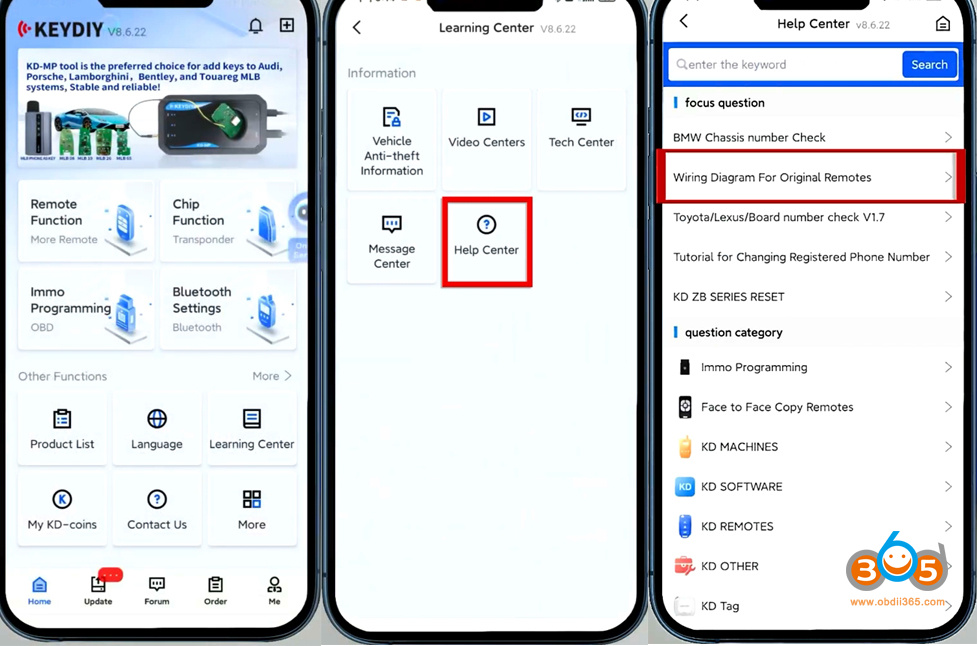 2. Open KD App, go to Learning Center- Help Center-Wiring Diagrams for original remotes.