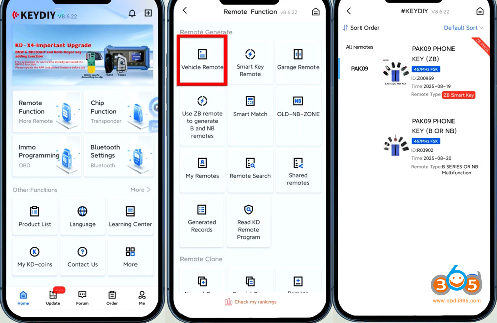 NOTE: You cannot directly generate KD FBS4 remote. Must pair with PAK09 Phone as Key first.
