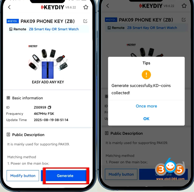 Turn on the Keydiy PAK09.