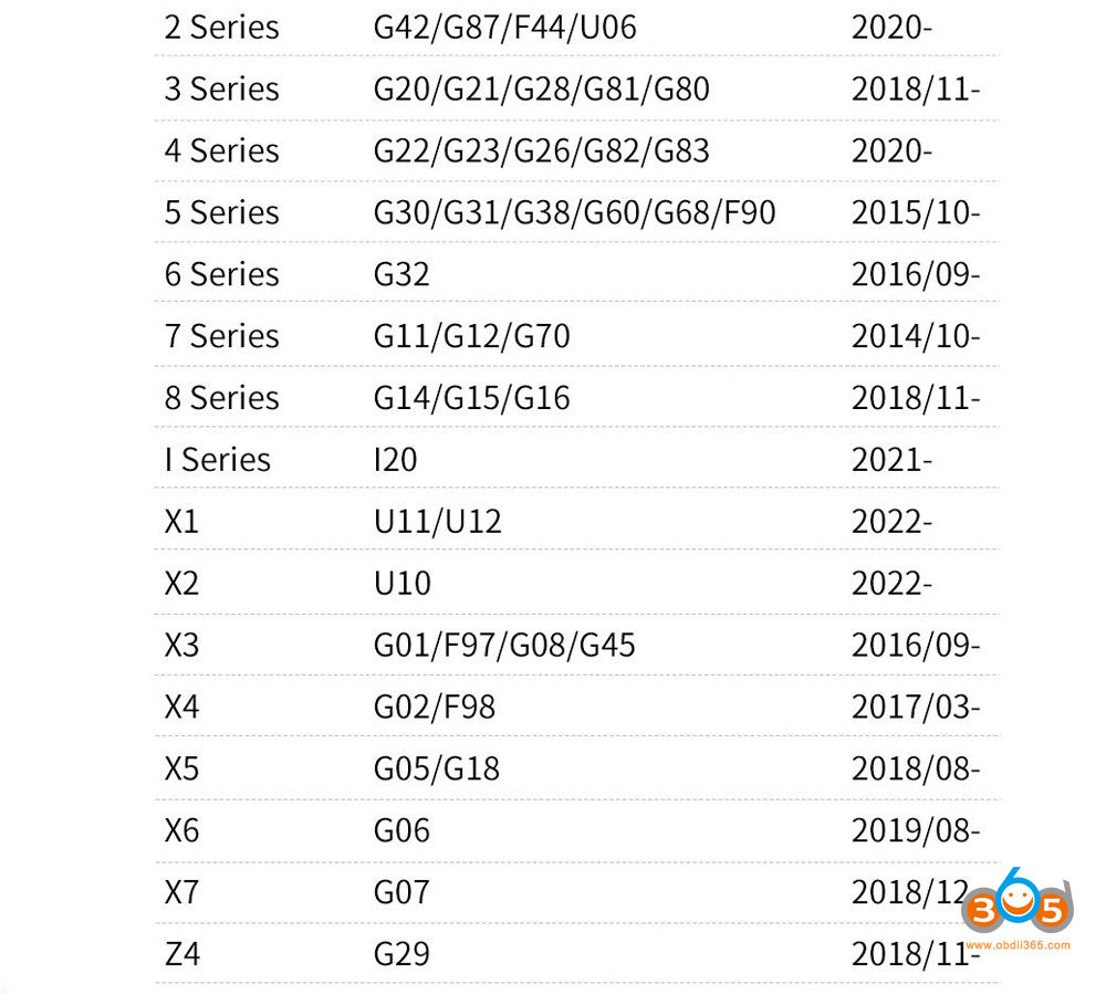 Autel IM608 IM508 supported BMW G/U/I series BDC2/BDC3/BCP car list:
