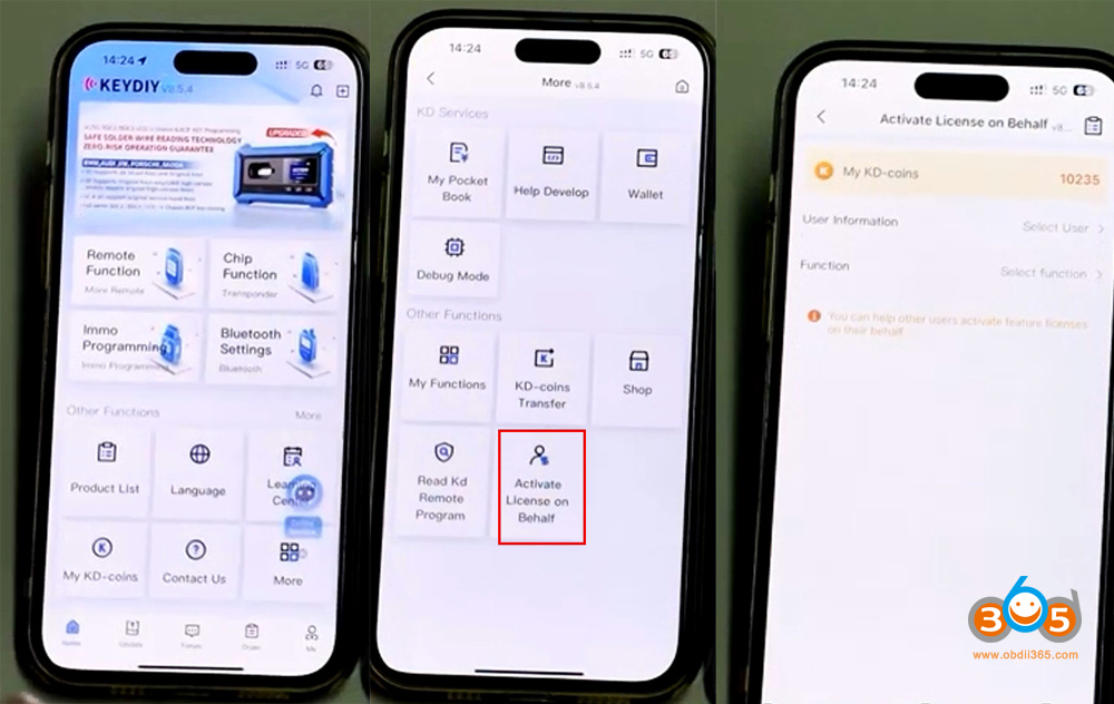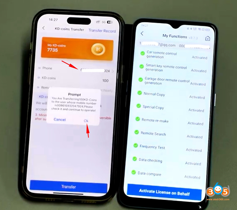For example, user A’s KD account has 10000+ coins. He wants to activate functions for user B.