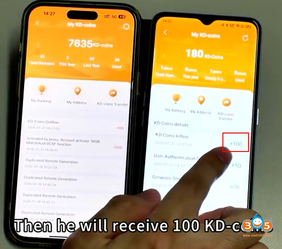 How to obtain Keydiy KD coins (points) and share coins with others?