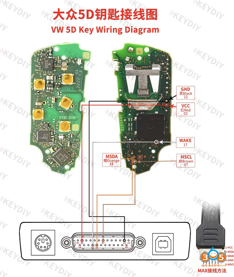 Then solder the modified cable to the key PCB as key wiring diagrams shown in the KD-MAX device.