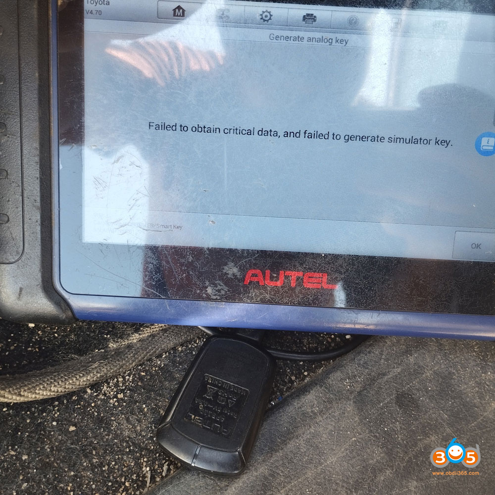 Tried to program 2023 Toyota FORTUNER all smart key lost using Autel IM508S. Backed up immo data successfully, but failed to obtain Critical data.