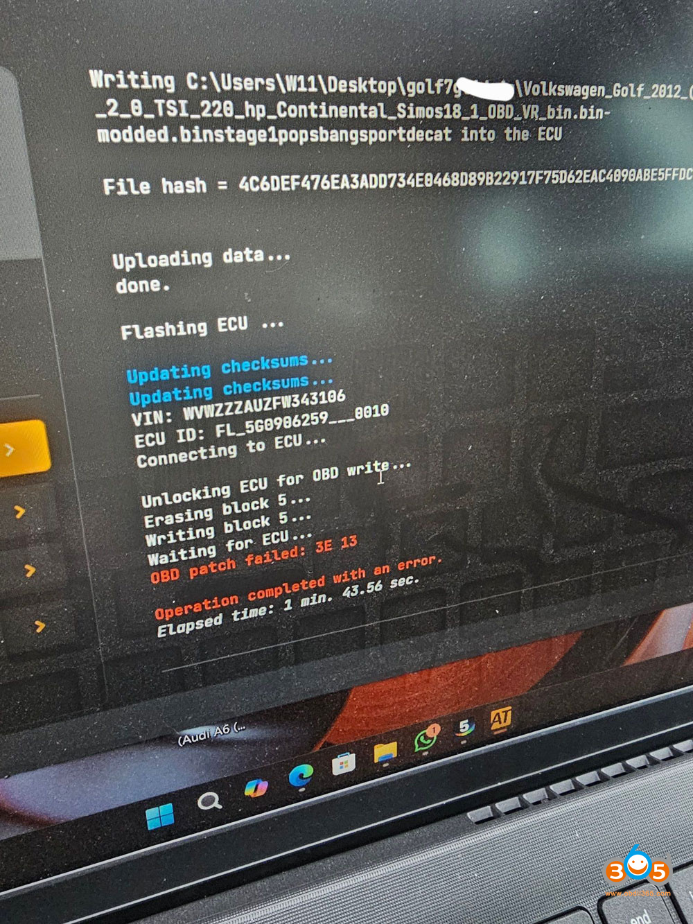 It’s a VW golf 7 gti with simos 18.1 ECU. Autotuner doesn’t write modified file stuck at 49% at unlock phase 0010 version. Flash frf it starts the car but only fail at unlocking ecu. AT software shows error OBD patch failed. Any solution?
