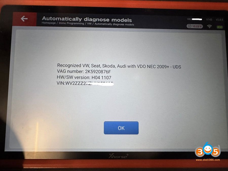 Automatic selection finds the wrong menu and opens old UDS but it is MQB 4.5 – not full MQB, more MQB upgrade on old UDS system.