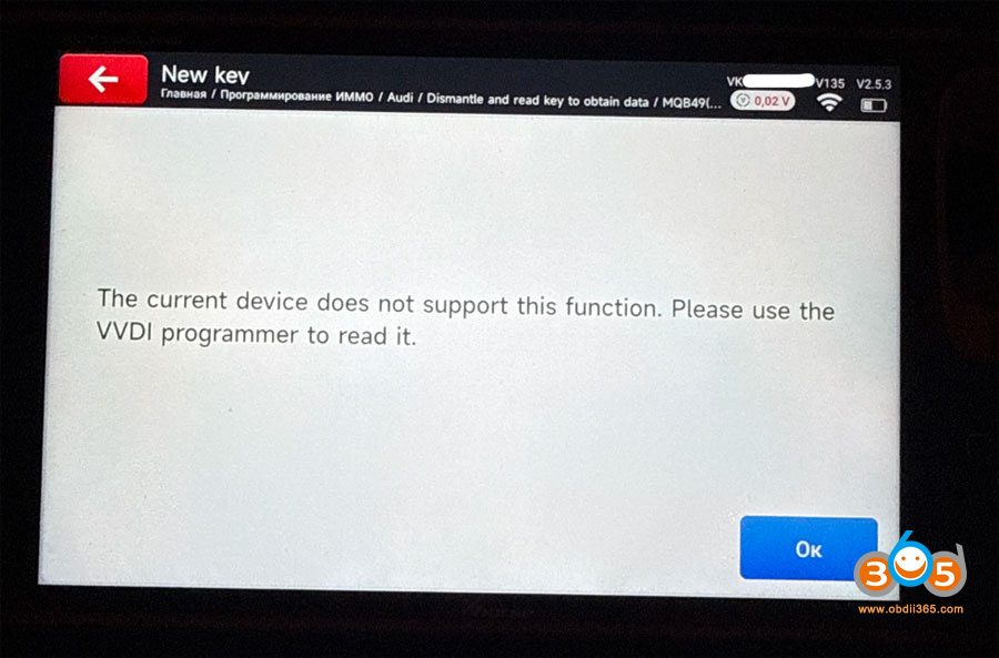 Tried to disassemble the original VAG MQB49 5C key and read key data to add a spare key using Xhorse Key Tool MIDI, the MIDI does have this option, but it says function not supported and needs VVDI Programmer to read it first. Any clue?