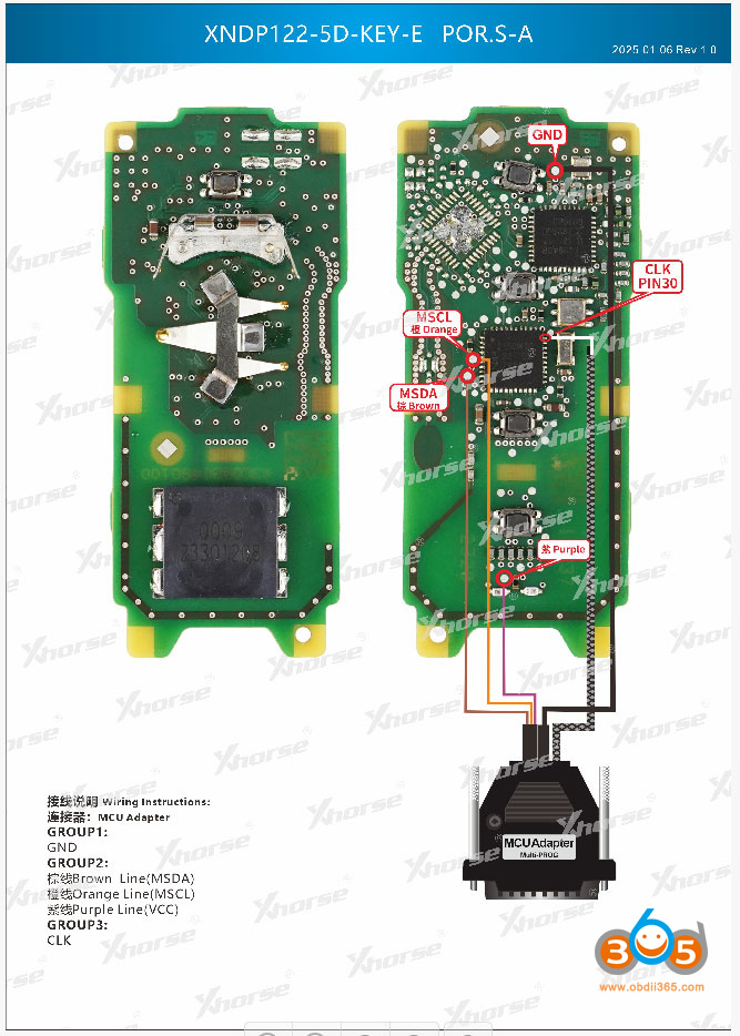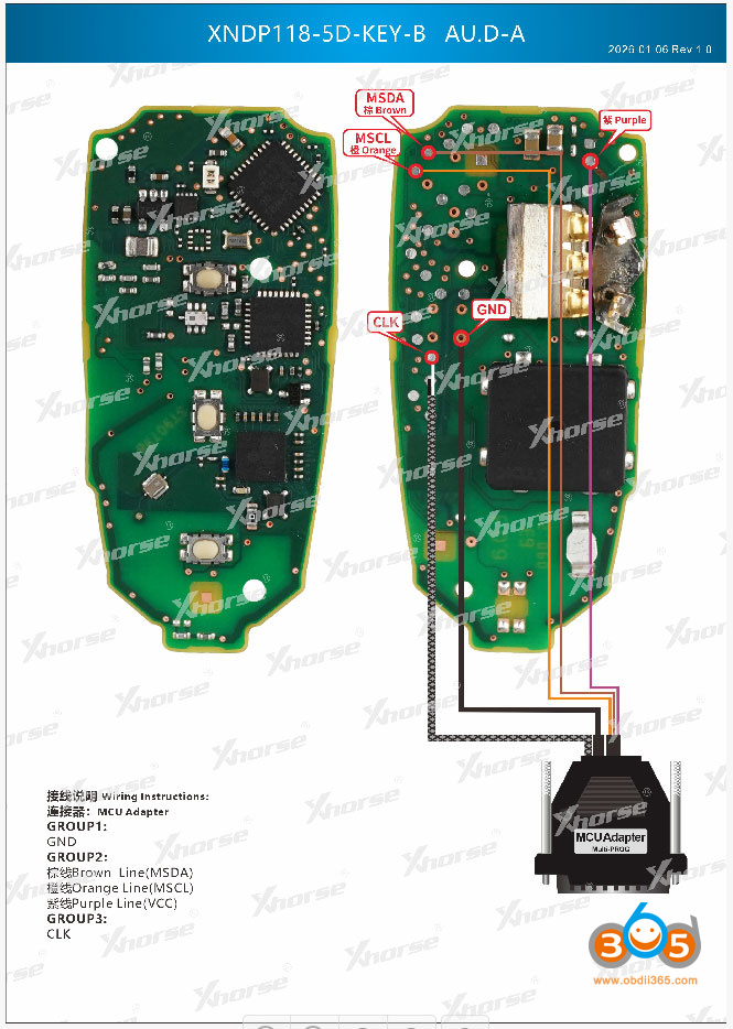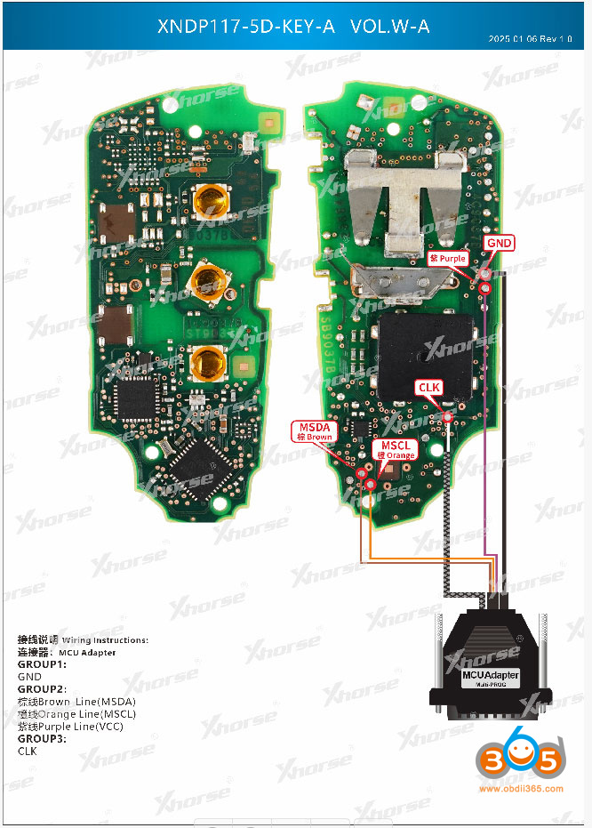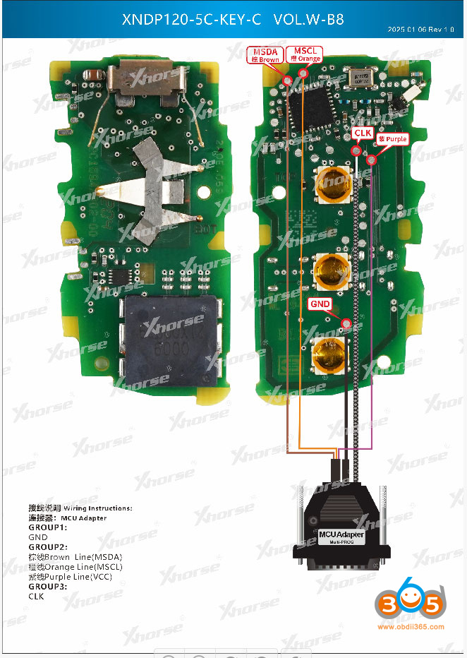 Xhorse Multi Prog wiring diagrams to MQB49 5C 5D keys: