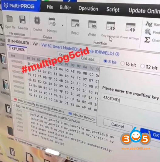 Select VW- VW 5C or 5D (Changeable ID) option. Click “Only Change ID” function. Enter the modified key ID.