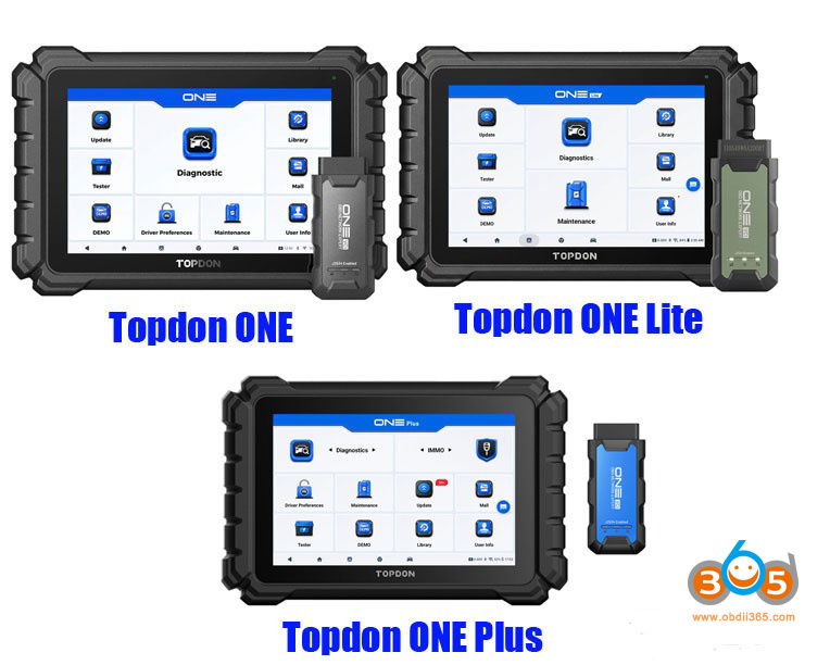 Topdon ONE (with gray VCI), ONE Lite (with green VCI), and ONE Plus (with Blue VCI) have the same J2534 VCI. Only color difference.