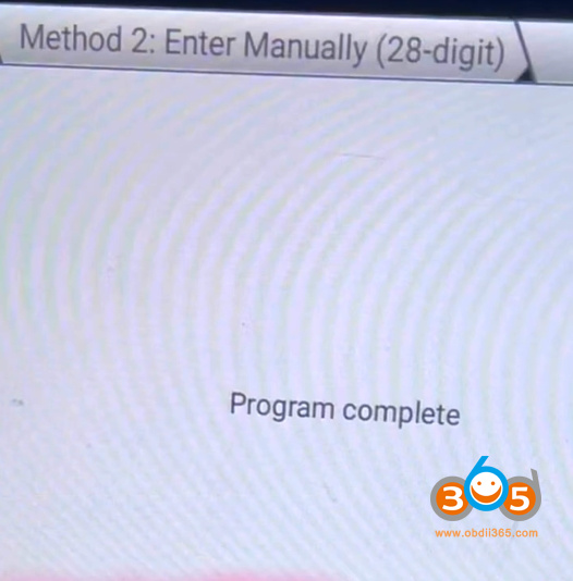 Manually input 28-digit pin code read by Autel and program key successfully